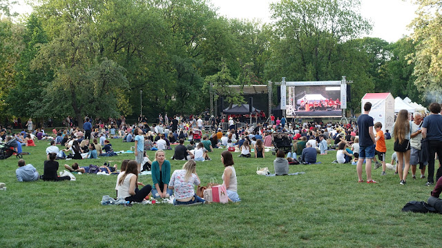 當天是布拉格之春的開幕日,開幕夜的音樂會在小城區的Kampa Park有現場轉播,我們剛到的時候正好演奏到〈莫爾島河〉XD 當地也蠻多人在轉播現場席地而坐,參與這場音樂盛事,帶著狗狗一起來聽音樂會的人很多。坐在草地上聽戶外轉播也是不錯的體驗,不少人一邊喝啤酒一邊聽,公園邊的啤酒攤生意無敵好,啤酒機沒停過,真不愧是人均飲酒量全球最高的國家ww