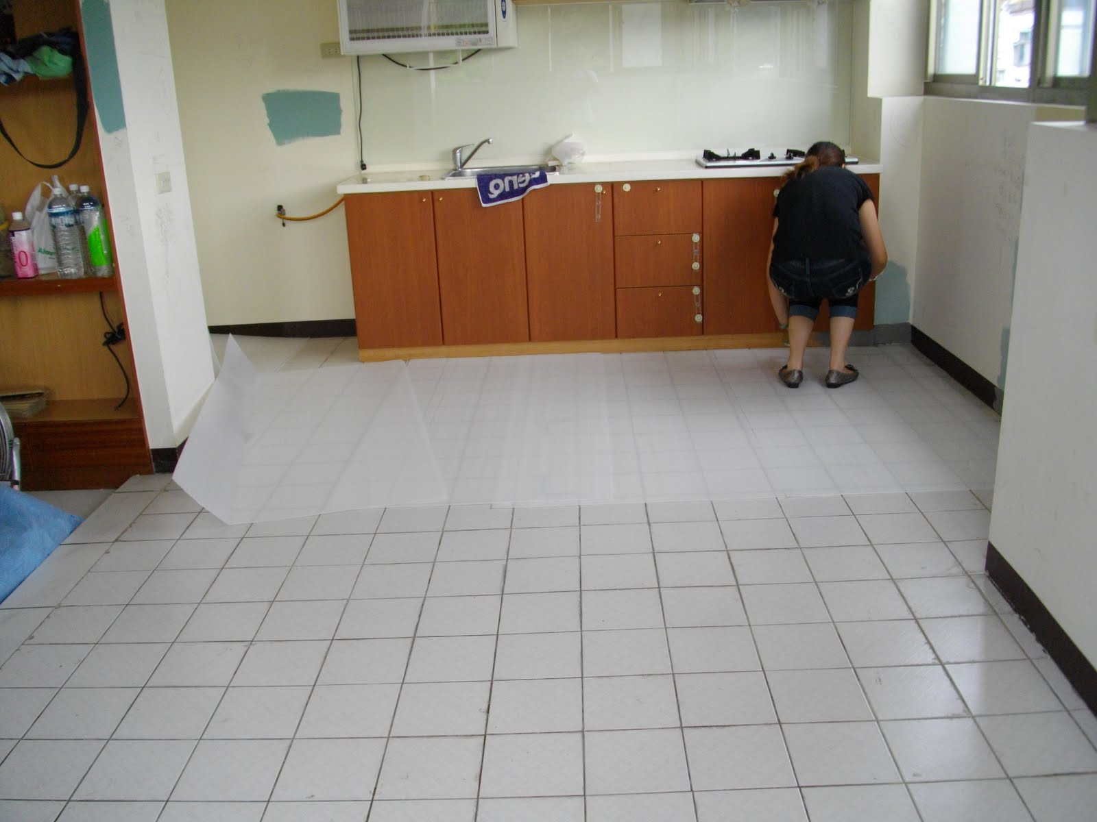 作業開始,先掃地,以免影響膠帶黏貼效果。