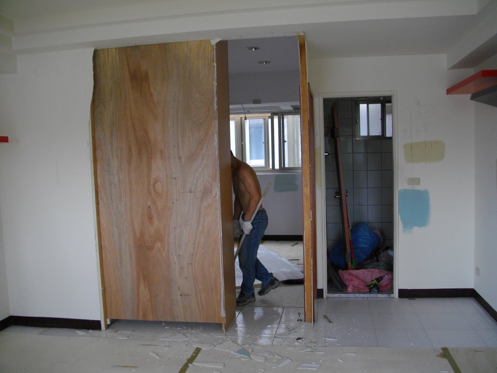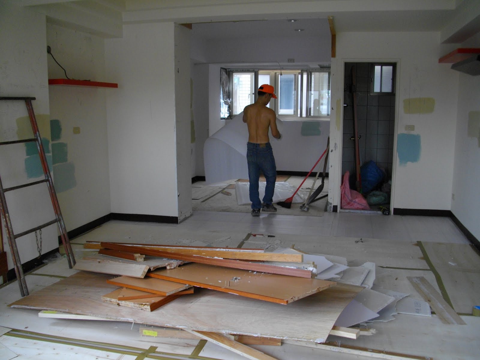 或許是作拆除的吧,我們需求的項目也單純,不拖泥帶水迅速報了價,便敲定動工時間。因為有稍微看了一下日子,本來擔心可能有其他業主也同時,到時只能開工,還好喬到可以一天做完;當天工班老闆放了三人在我們這邊,便往其他工地去了,看來同樣都是不甚複雜的小工程,才能同時兩邊進行吧?